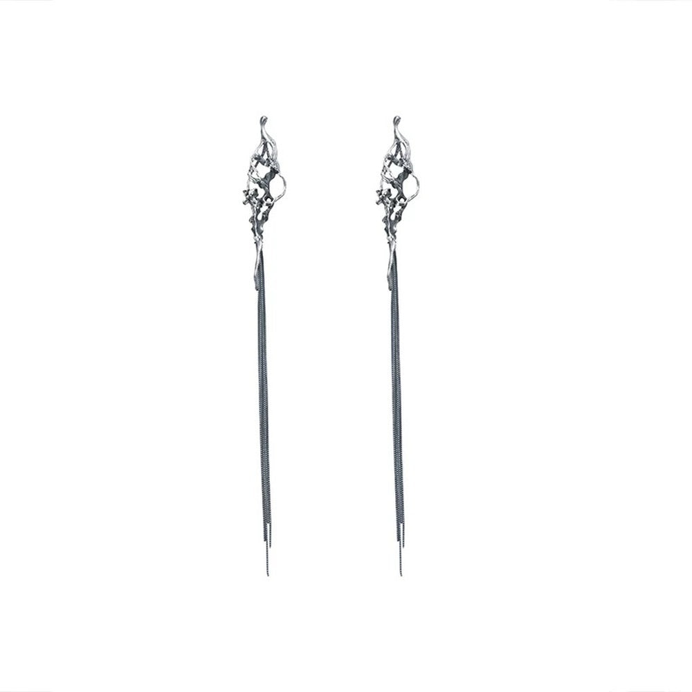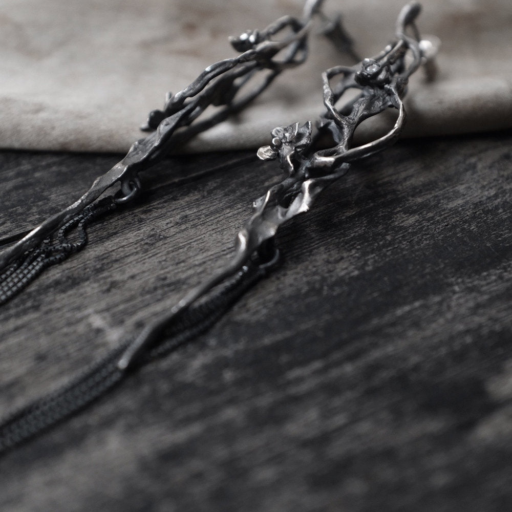 Handcrafted with zircon accents, these long tassel earrings are edgy and dark romantic.